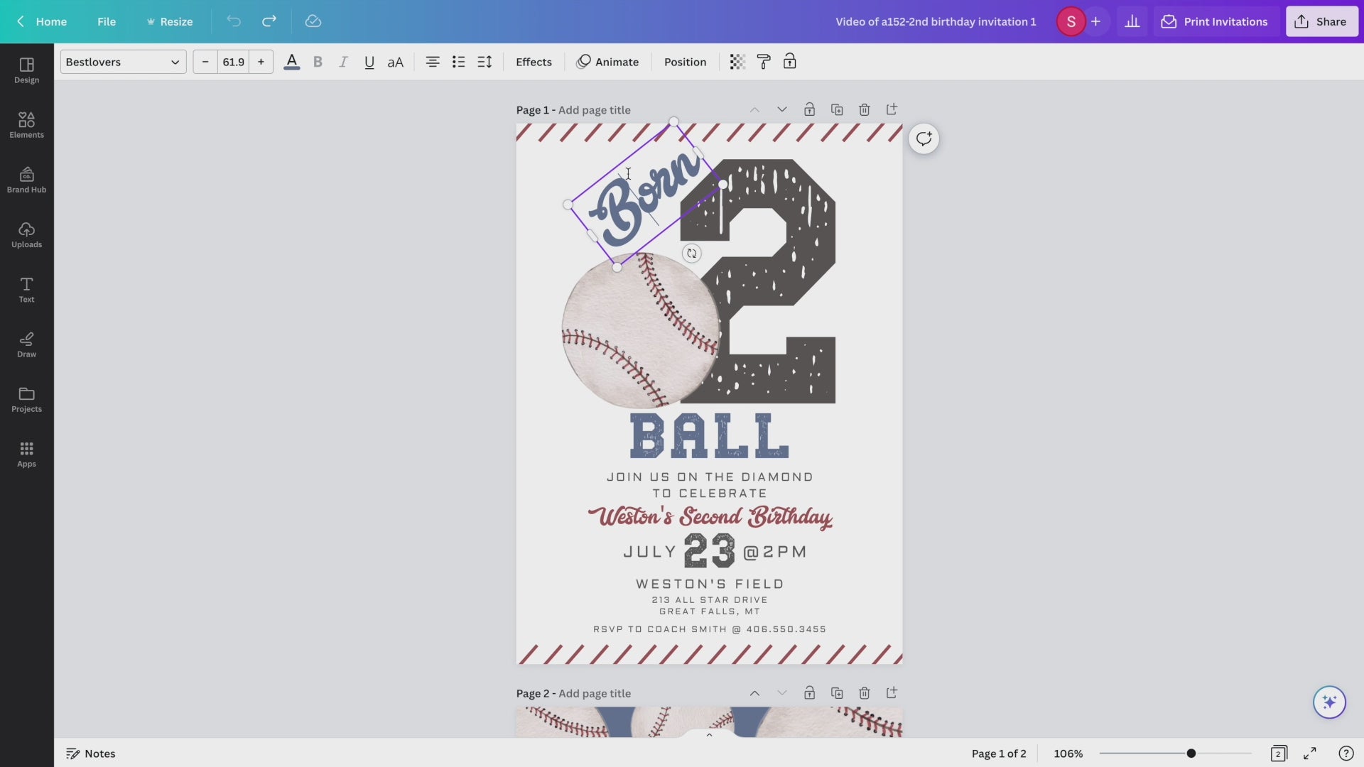 Set the stage for a home-run of a birthday party with this Baseball Born TWO Ball Second Birthday Invitation! This stylish Canva template is simple to edit and customize with all your special details. Get your little slugger ready to celebrate with a vintage look that's sure to start the party off on the right foot!