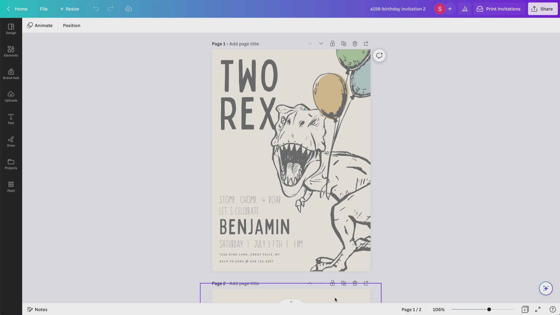 Make your kiddo's second birthday ROAR with this cool Modern TWO Rex Dinosaur Birthday Party Invitation! Featuring a cool t-rex, party balloons, and a prehistoric birthday design, this editable self-template with Canva will make your invite stand out from the crowd and put a smile on everyone's face!